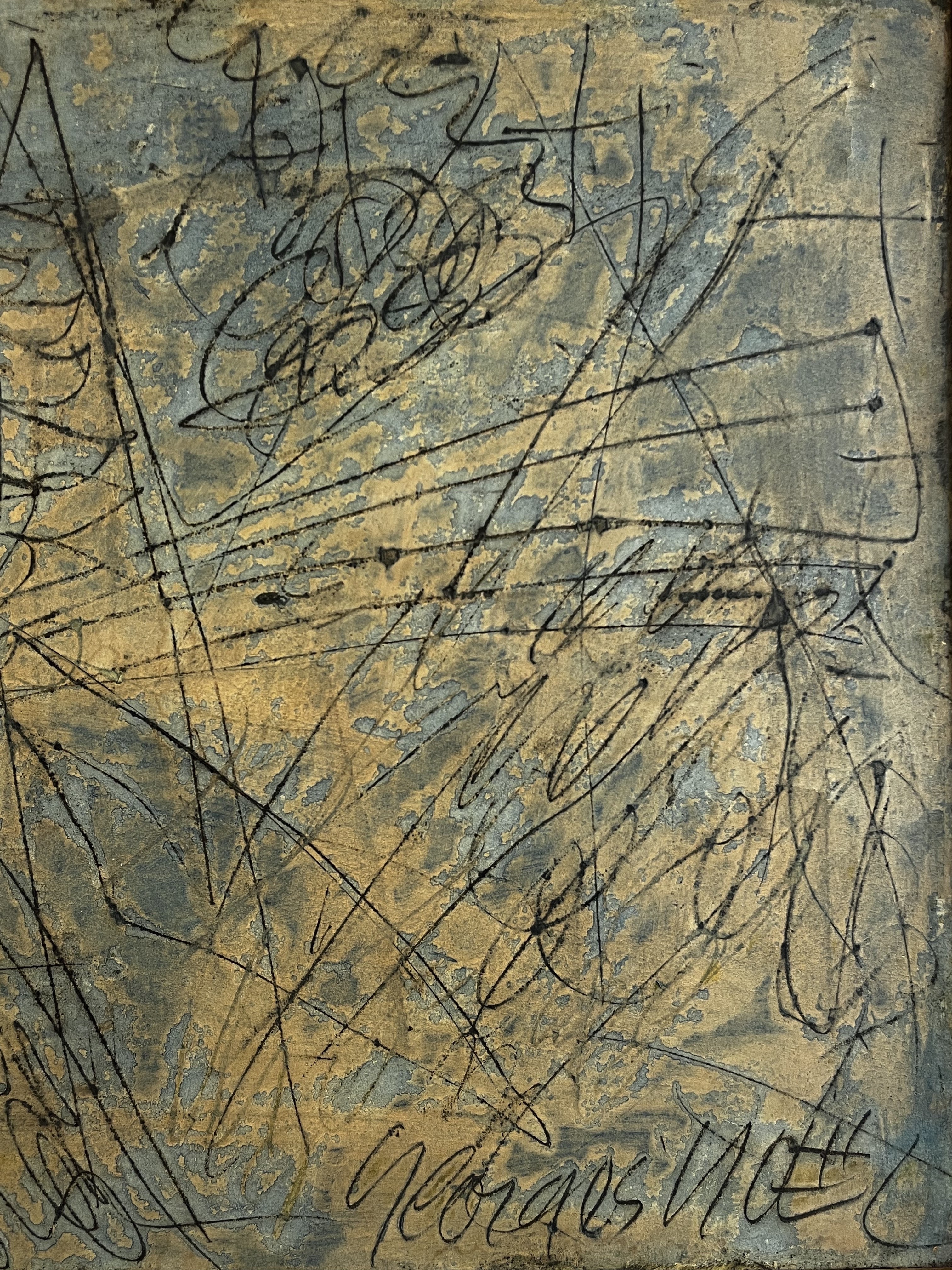 Georges Noël (1924-2010) est une figure majeure et singulière de l'art abstrait d'après-guerre. Il est encouragé par Dubuffet, soutenu et montré par Paul Facchetti à partir de 1957. Il fera une partie de sa carrière aux États-Unis. Souvent rangé aux cotés des grands artistes informels de son temps, son oeuvre et sa pratique restent à part. Sa proximité avec les grands acteurs de l'art contemporain de l'époque est manifeste, notons les rapprochements opérés par la galerie Christophe Gaillard entre les oeuvres de Dubuffet et de Noel autour des années 1957-1960. Et comment ne pas penser à Twombly.