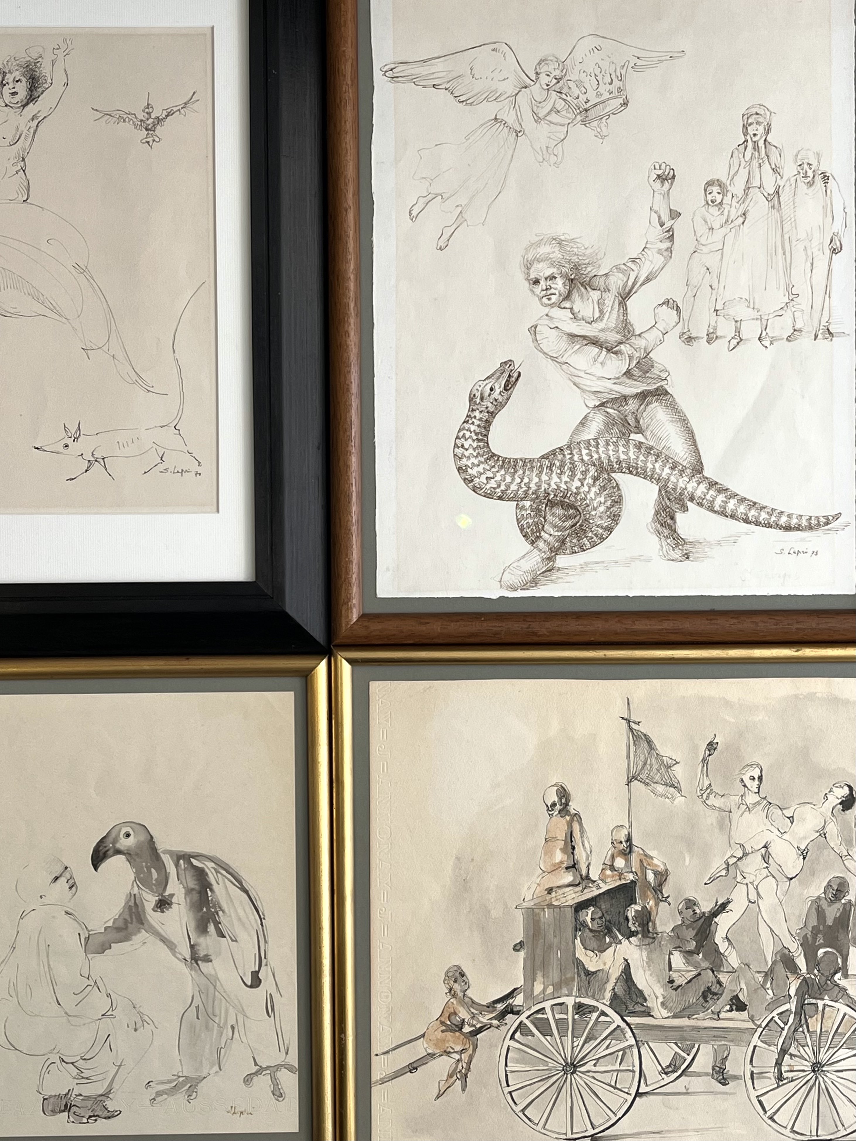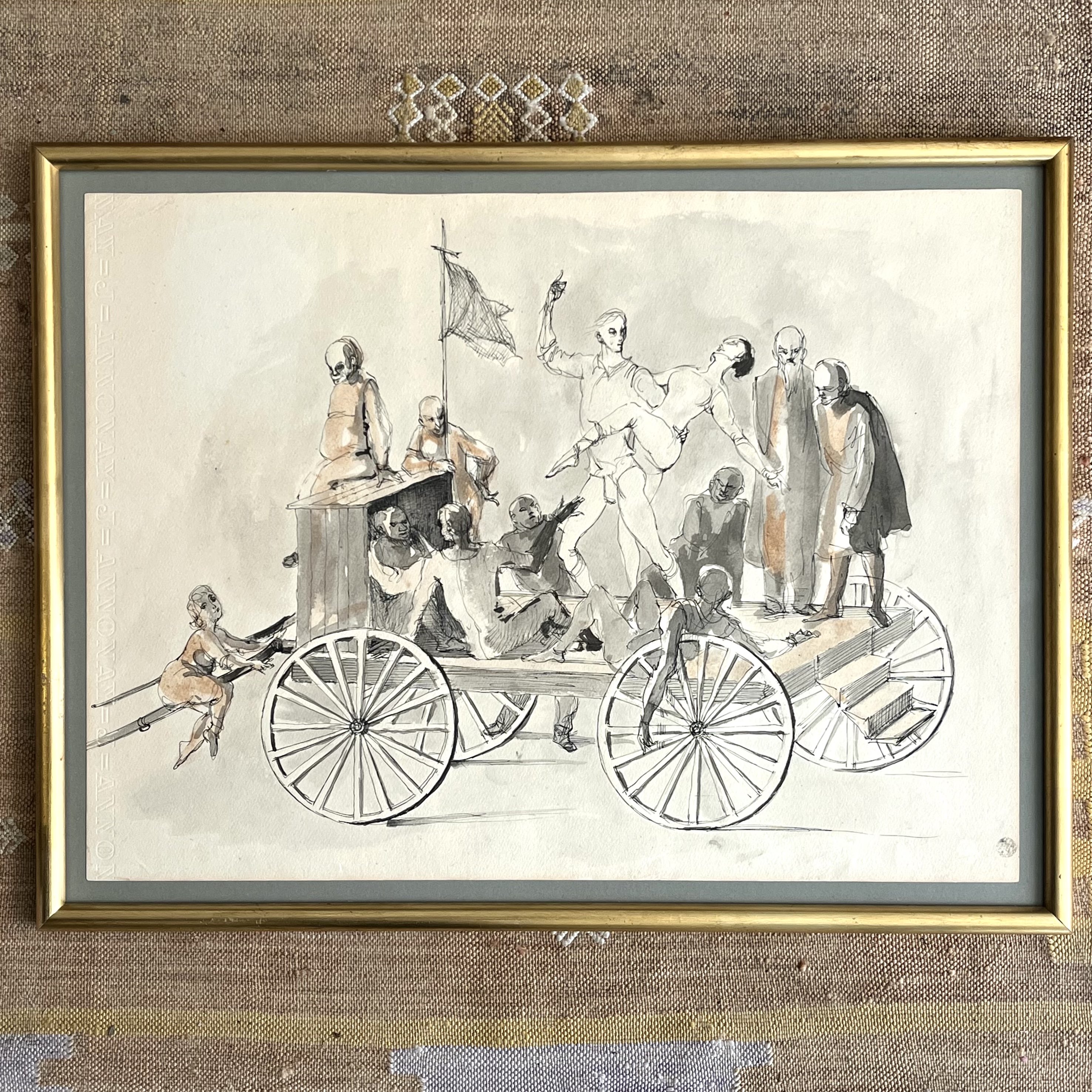 Les Saltimbanques, dessin à la plume et lavis d'encre.